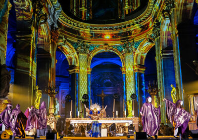 Paris, Coeur de Lumières, Le roman de Saint-Sulpice signe ici la première scénographie du genre dans la capitale. Une création inédite où se mêlent art vivant, projections vidéos monumentales, lumières et musique originale, au service d’une histoire « taillée sur mesure » pour l’édifice.